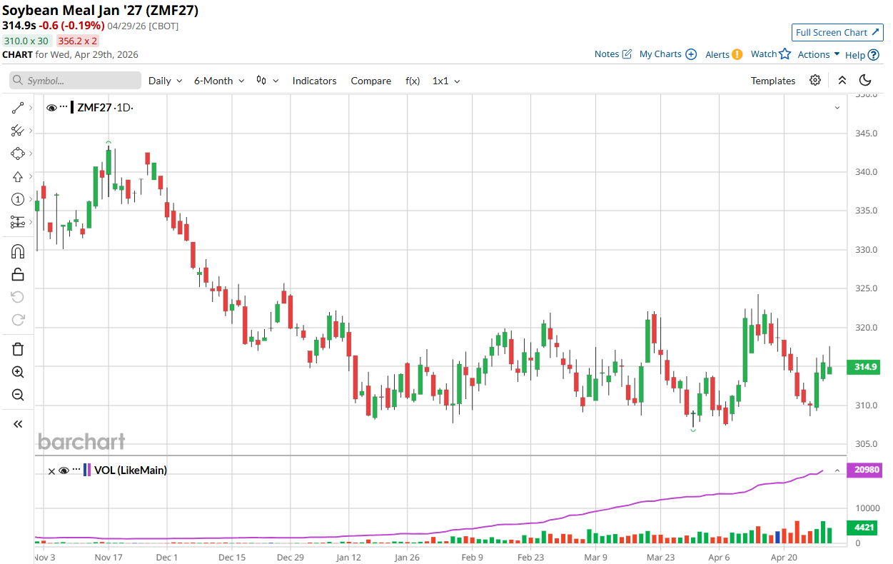 Oil Share and bean oil futures led the soybean complex with crude oil prices underpinning the enthusiasm for biofuels again. July soybeans rose 7 3/4 cents to $11.97, near the daily high and closed at a six-week high close. July soybean meal fell $3.60 to $323.80, nearer the daily low. July soybean oil gained 160 points to 74.12 cents, near the daily high and hit another contract high. Crude oil rallied nearly 8% with no advancement in Iranian talks and Pres Trump hinting at further operations in Iran. Bean oil rallied in the front months and deferred months alike, and the RIN market hit $2.00 to coincide with the continued perception that US supplies will be insufficient in meeting the EPA’s RVOs. There is more noise in the market in my view echoing that energies stay higher for longer. If this happens, it is my belief that the most undervalued contract on the Board is new crop meal. When the calendar flips from Fall to Winter, we sometimes see meal demand for feed increase at the expense of bean oil amid the oil share trade. Its early for now, but any pressure meal might feel moving forward in my opinion, would be felt in the front month contracts and not the deferred. Currently Bean oil has led the complex higher and for quite a while. That said, nothing goes up or down forever, and with funds record long bean oil, we will see a lightening up or flip eventually. Trade idea below using deferred meal, January 27 options.
