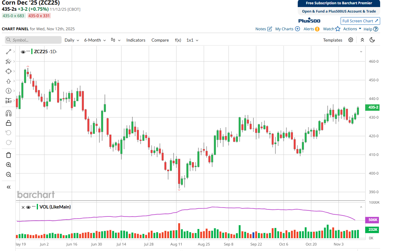 Options-Buy the December corn 430 put for 2.4 cents plus commissions and fees.
