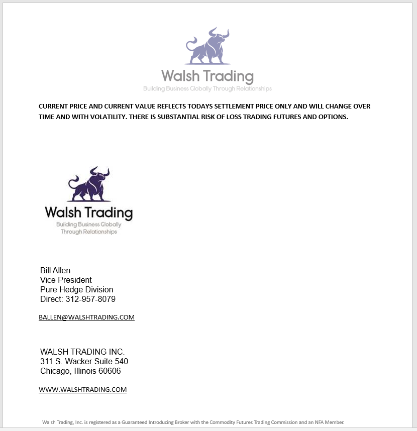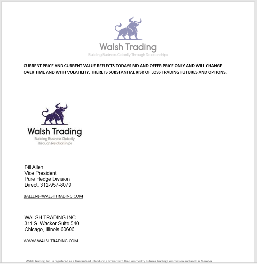 If you would like to open an account, please call or send me an email BALLEN@WALSHTRADING.COM