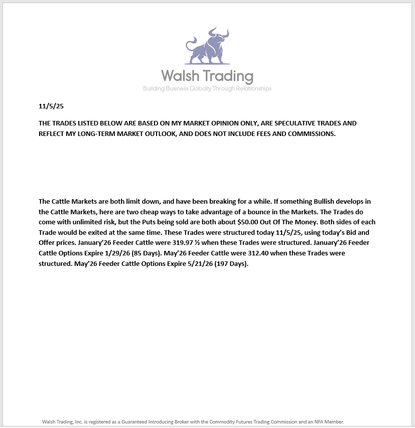 I STRUCTURED AND SENT OUT THE TRADES BELOW ON 11/5/25 – SOYBEAN OIL AND FEEDER CATTLE – IF YOU WOULD LIKE TO SEE MY TRADE RECOMMENDATIONS RIGHT AFTER THEY ARE STRUCTURED – JUST SEND ME AN EMAIL