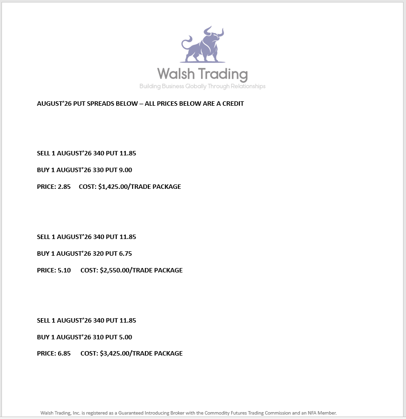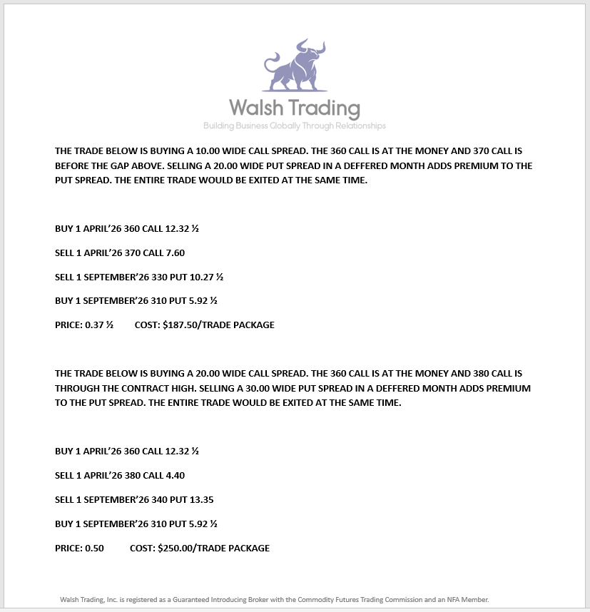 All information, communications, publications, and reports, including this specific material, used and distributed by Walsh Trading, Inc. (“WTI”) shall be construed as a solicitation for entering into a derivatives transaction. WTI does not distribute research reports, employ research analysts, or maintain a research department as defined in CFTC Regulation 1.71.