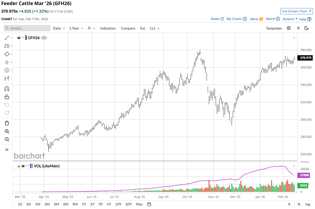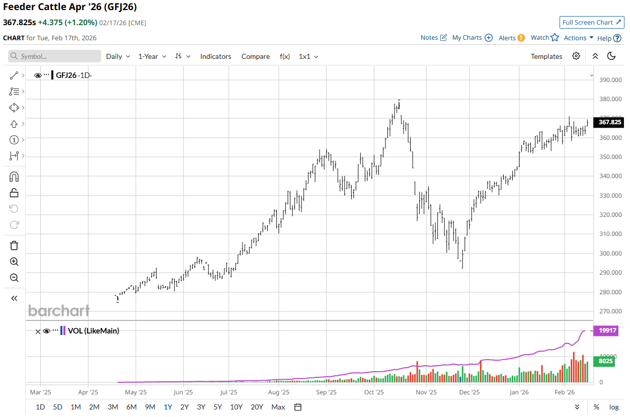 WATCH IF THE NEXT GAP WILL BE FILLED IN THE APRIL’26 FEEDER CATTLE @ 376.50 – CONTRACT HIGH IS 378.45