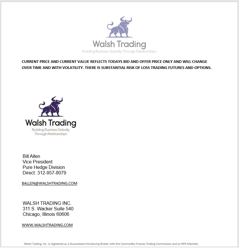 Through Walsh Trading I have built the best 5-man team in the business. Give me a call and let me show you how the Pure Hedge Division can help your bottom line.
